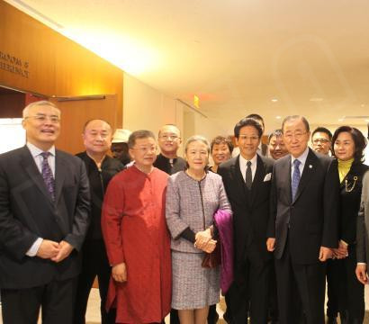 中国常驻联合国代表刘结一、中国驻纽约总领事章启月大使夫妇也联袂出席活动。刘结一大使在致辞中表示,书法是中华文化的重要组成部分,也是世界文化的瑰宝。它承载着中国哲学思想走上世界舞台,在国际交流中推动着人类文明向前发展。潘基文秘书长书写的“上善若水”即是一例。