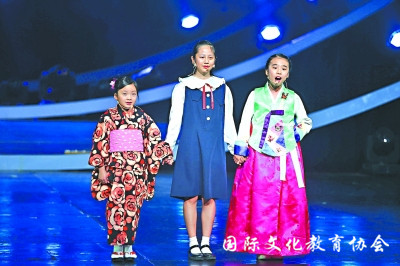 《中日韩艺术之夜》文艺演出上,中日韩三国小朋友以三国语言