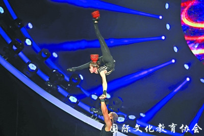 《中日韩艺术之夜》文艺演出上,中国杂技团表演杂技《腾·韵——顶碗》